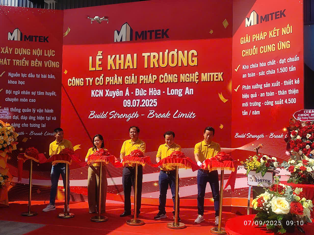 Ban lãnh đạo cắt băng và nâng ly chúc mừng ngày Khai trương nhà máy Mitek