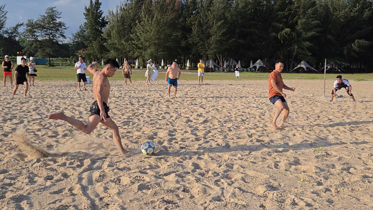 - Trận cầu bóng đá bãi biển đầy sôi động - nơi tinh thần đồng đội, máu lửa và nụ cười rạng rỡ lan tỏa trên từng bước chạy.